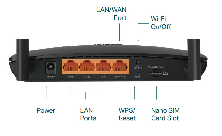 Вид на мрежата: FDD-LTE Cat4 (800/900/1800/2100/2600MHz); 2.4GHz guest network × 1; Wireless; 2.4GHz and 5GHz; HSPA+/HSPA/UMTS/EDGE/GRPS/GSM; 2.4GHz
