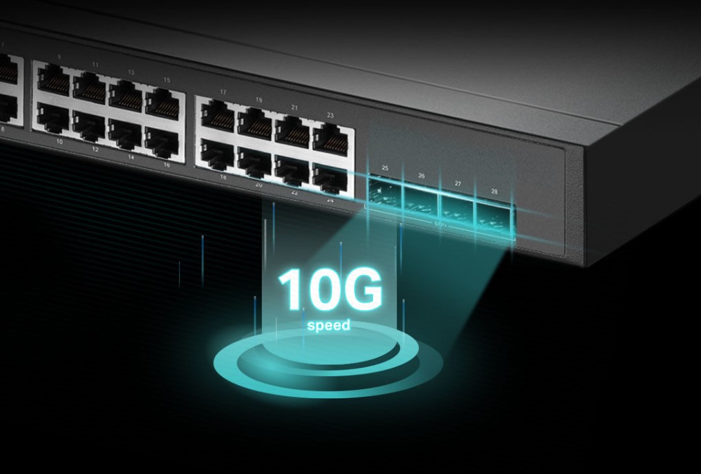 24-портов комутатор TP-Link TL-SG3428X-M2 JetStream 2.5GBASE-T L2+ управляван с 4 10GE SFP+ слота