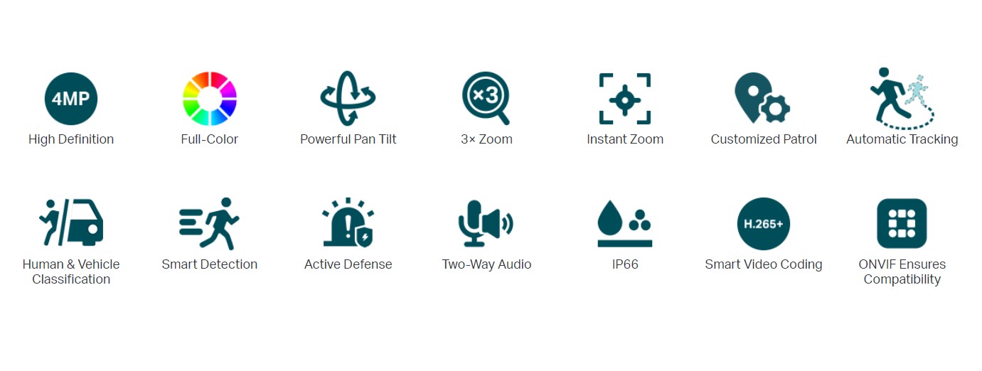 Допълнителни възможности: MicroSD Card Slot; Water proof; mFi RJ45 connectors.; IR Cut Filter; Night Mode; Input Trigger Motion detection; пресичане на линия/нарушение на зона/детекция на звук/анти-саботаж