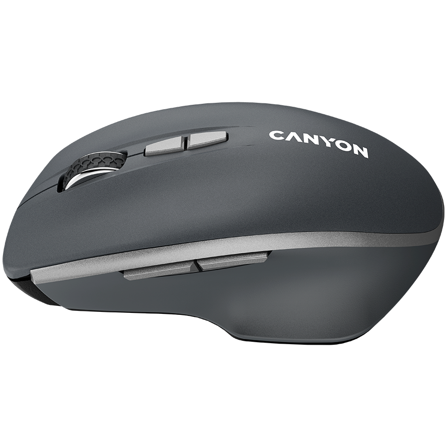 One of the most successful solutions among all Canyon PC accessories! Due to the improved LED sensor with «Blue LED» technology, this mouse works much more accurately than any other mouse of this class, and with power saving technology, it increases the operating time by 20% from a single AA battery. Wireless 2.4 GHz USB receiver allows you to maintain a high-quality connection without cluttering the workplace with unnecessary wires. 7 durable buttons and 3 DPI switching levels ensure optimal operating functionality. The monolithic, ergonomic right-handed design and durable UV Matt covering and Rubber Coating make the mouse a decent everyday companion.