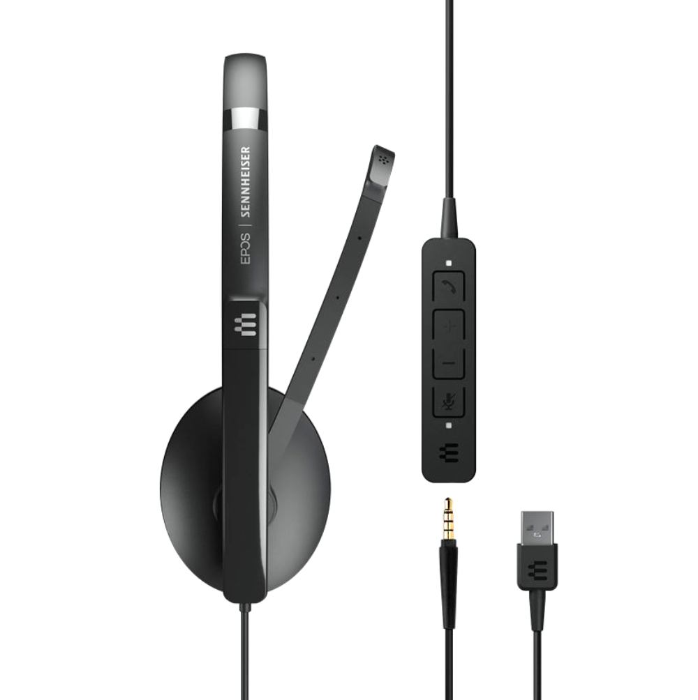 Стерео USB слушалки с 3.5 mm жак и подвижен USB кабел с вградено управление на разговорите. Работете със стилни, удобни слушалки, проектирани за изискванията на днешното хибридно работно място с превъзходен стерео звук.