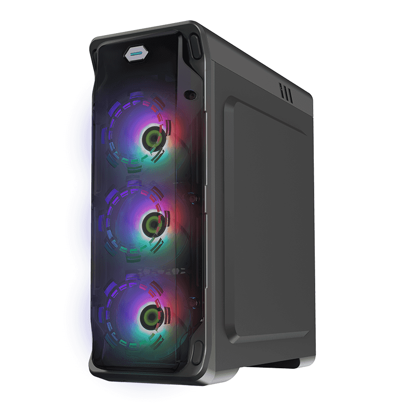 RGB вентилатори: Включва 4 фиксирани RGB 12cm вентилатора (предни и задни), които не само придават уникален стил на корпуса, но и осигуряват отлична охлаждаща производителност за системата.