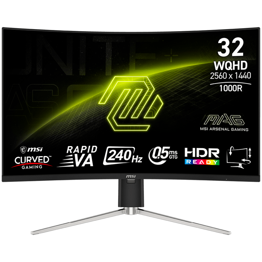 MSI MAG 325CQRXF E2 Gaming Monitor, 31.5″ 240Hz, WQHD (2560×1440) 16:9, Rapid VA, 0.5ms, 300nits, 3500:1, 178/178, AMD FreeSync Premium, Adjustable Stand, 1x DP, 2x HDMI, 1x Type-C, 1x Headphone out, 3Y Warranty